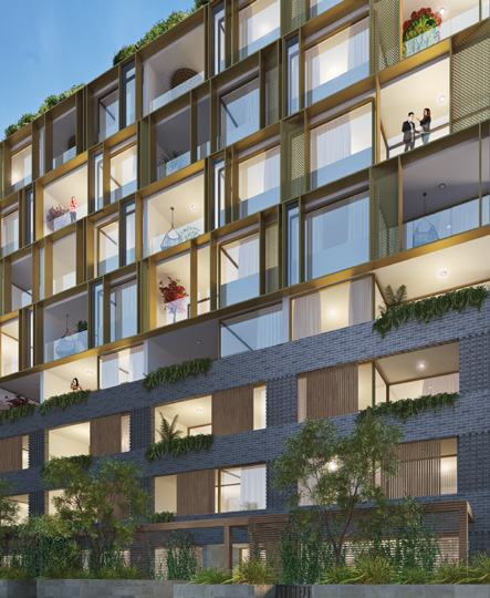 Carefully conceived by acclaimed design firm SJB, Grosvenor presents mostly north facing distinctive lifestyle apartments set within a picturesque landscaped setting. A natural material palette of textured concrete and masonry offset by finely crafted metal detailing and timber screening sets the scene for a sophisticated address with street appeal. Versatile in both layout and aesthetic, each 1, 2 and 3-bedroom residence boasts efficient spatial planning and fresh, modern interiors. Extensive glazing ensures unparalleled district and city views on the upper levels and a profusion of natural illumination and cross ventilation for each meticulously designed apartment.